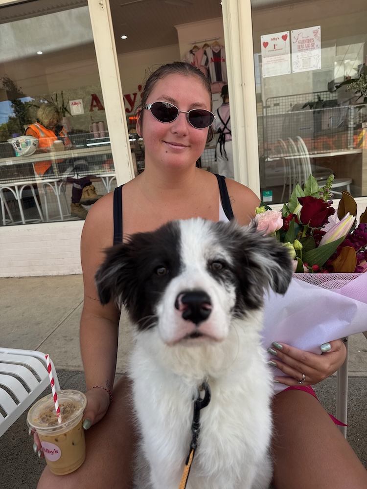 Alby's Deli had fantastic coffee and bagels. Green Olive was lovely in the sun with some sparkling wine and cheese. Spud got lots of pats from everyone. He was very gentle with young kids.