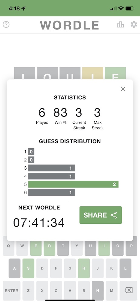 I actually can't believe the phenomenon that Wordle has become! I can kind of see why it works so well though. With you only playing for a short time everyday it gives you that serotonin hit but leaves you wanting more.