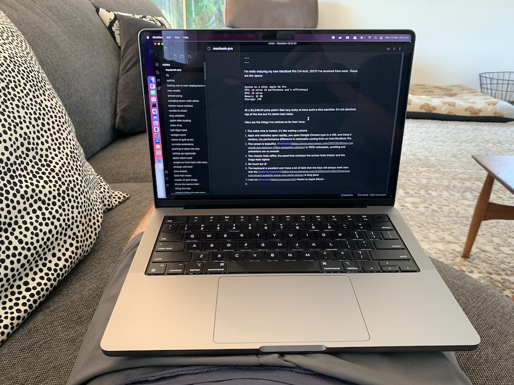 I'm really enjoying my new MacBook Pro (14-inch, 2021) I've received from work. These are the specs: