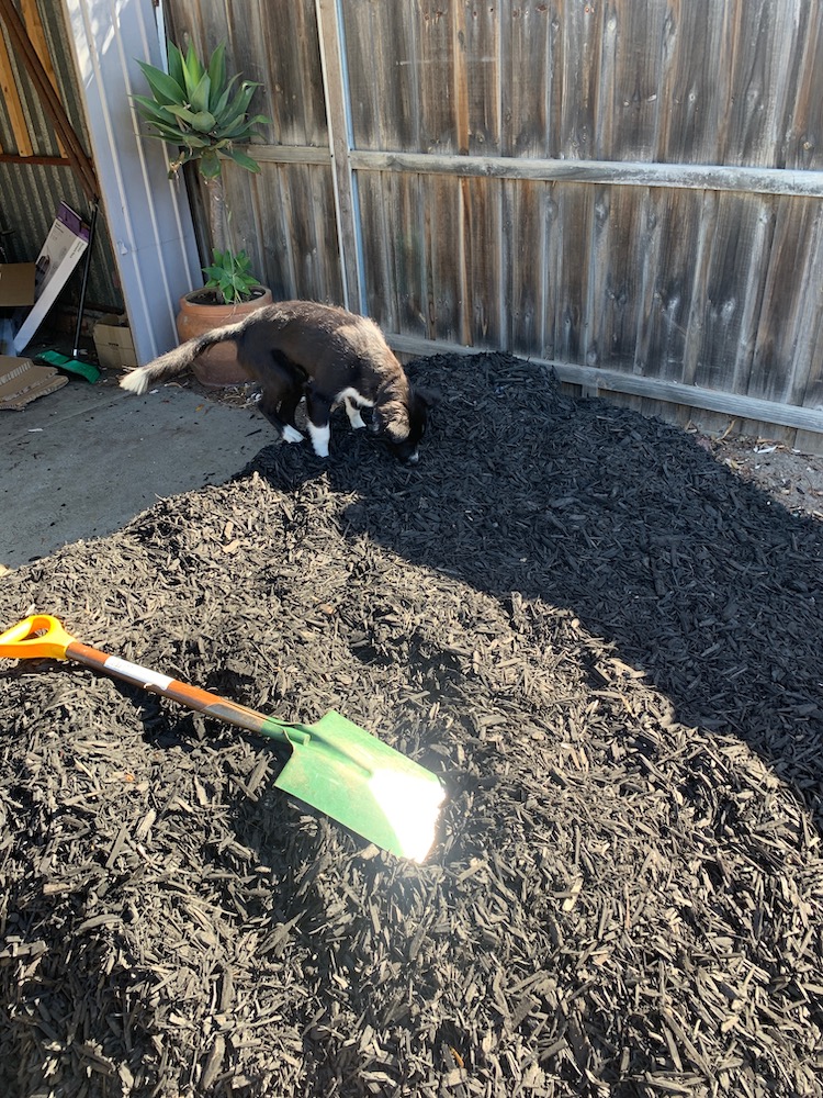 We had to pull out a bunch of dead plants from the garden beds where we wanted to lay the mulch. They looked like this before the mulch was applied.