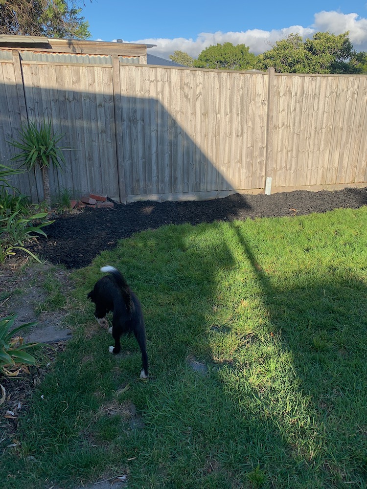 On Monday we had a big delivery of mulch. We ordered 2 cubic metres from Soilworx. There were a few different options for colour but went with black.