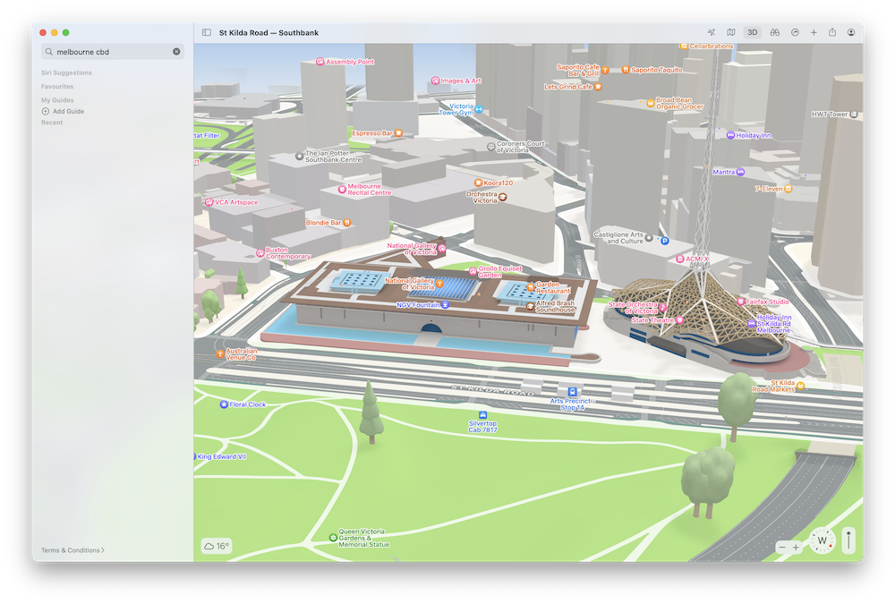 Inspired by this post and the way in which it renders Boston's landmarks on Apple Map's 3D here's a couple of sites in Melbourne.