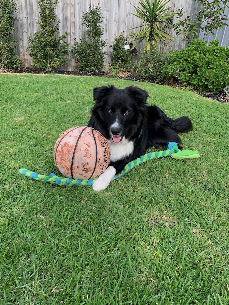 The rope is a new addition given to us by some friends. When he gets zoomies he sometimes puts it in his mouth and prances around the yard.