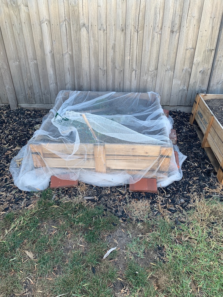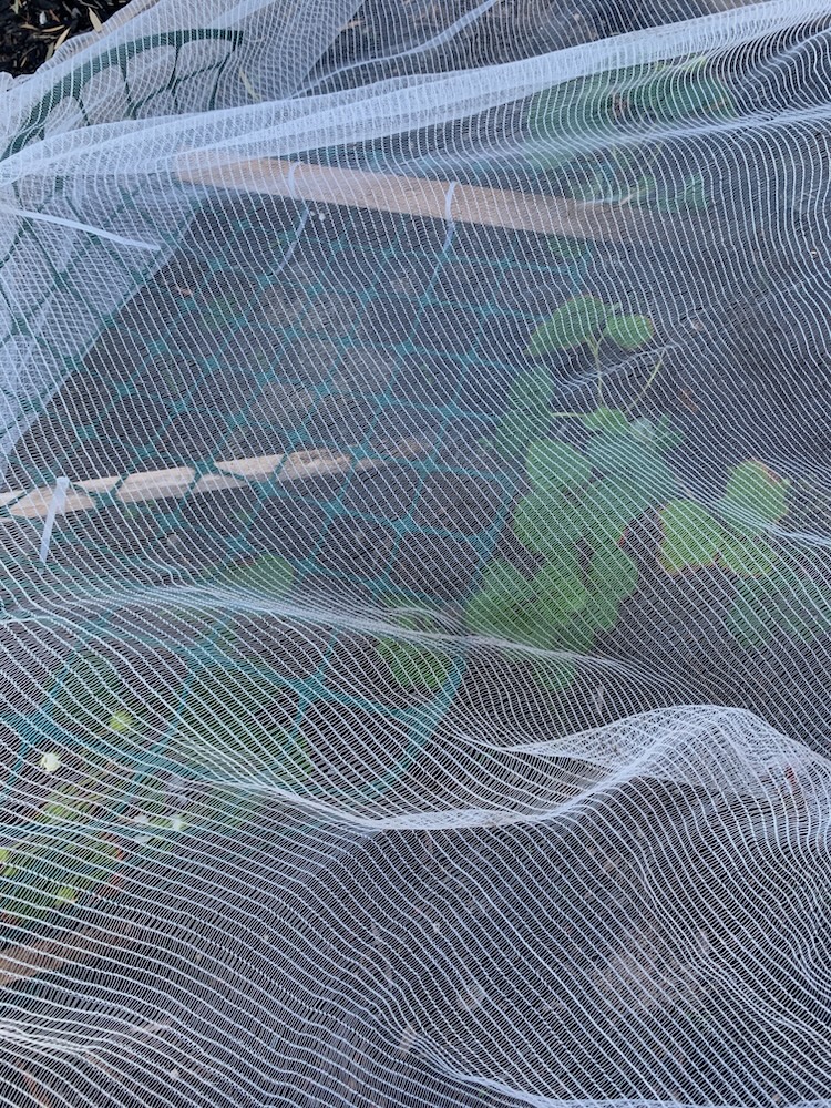 At 7.27PM Boots is at the strawberries and you can see he's destroyed the netting and the lattice.
