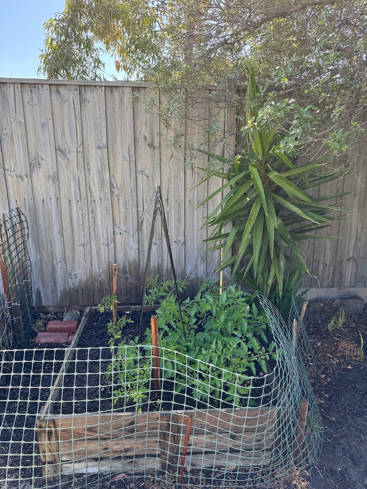 Tomatoes: thriving, tomatoes just grow so easily and basically don't need care