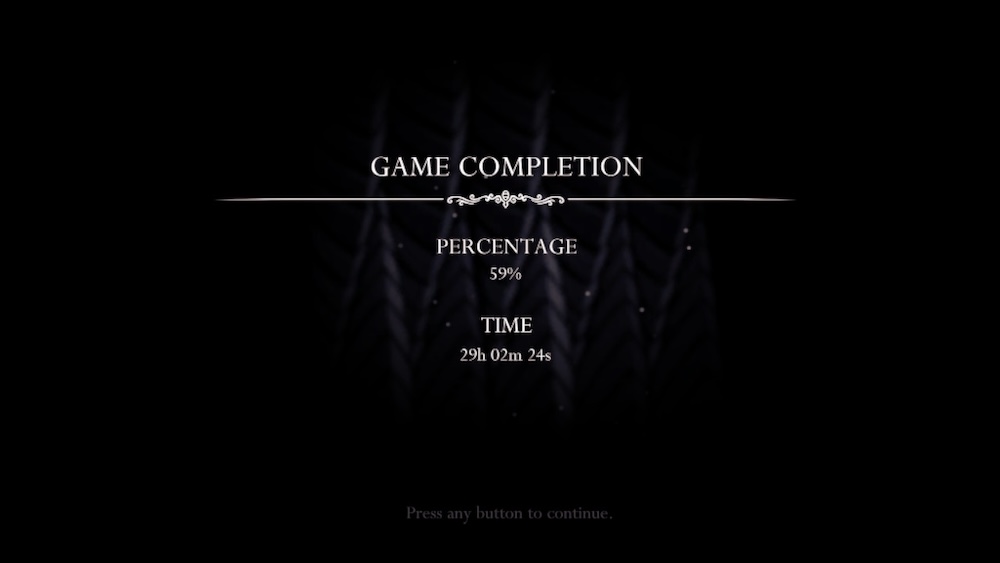 I finished Hollow Knight last night taking down the final boss. As I've mentioned before it's a fantastic game that deserves all the praises its received. Now we wait with anticipation for Silksong. It's weird given that it was so so long ago when the trailer was dropped that the game still hasn't released. Surely development is done.