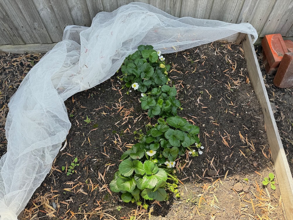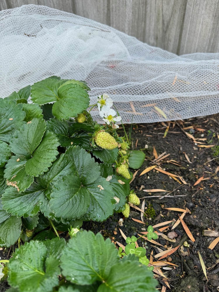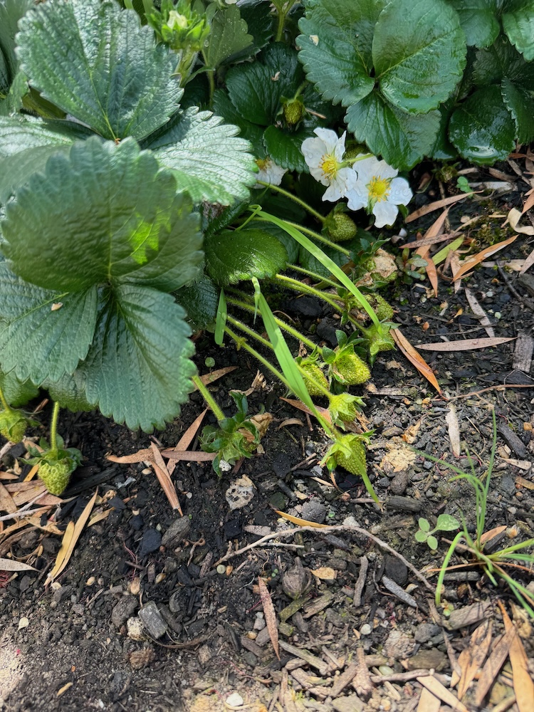 Strawberries: there's heaps starting to come through, they're just still green, I'm kind of amazed it survived the whole of winter